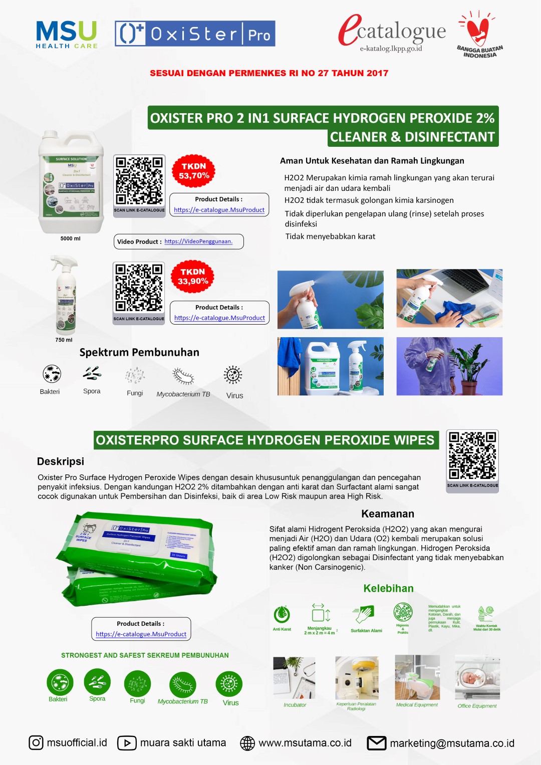 Oxister Pro Surface Hydrogen Peroxide Wipes dengan desain khususuntuk penanggulangan dan pencegahan penyakit infeksius. Dengan kandungan H2O2 2% ditambahkan dengan anti karat dan Surfactant alami sangat cocok digunakan untuk Pembersihan dan Disinfeksi, baik di area Low Risk maupun area High Risk.